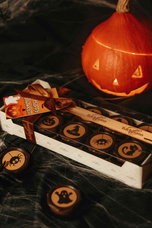Auch unsere zartschmelzenden Pralinés sehen für Halloween so richtig spooky aus. Probiere unsere süssen Halloween-Praliné aus feinster Schweizer Milchschokolade. Ein schauriger Gaumenschmaus für Halloweenfans!