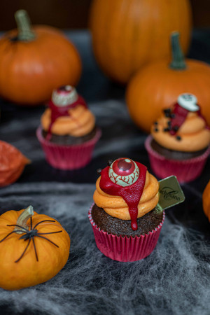 Unsere beliebten Cupcakes kommen auch dieses Jahr in einer schrecklich schönen Halloween-Aufmache daher. Die gruseligen Toppings machen die Halloween-Cupcakes zur perfekten Tischdekoration und zu einem einmaligen Halloween-Snack für unsere Feinschmecker.