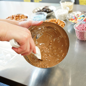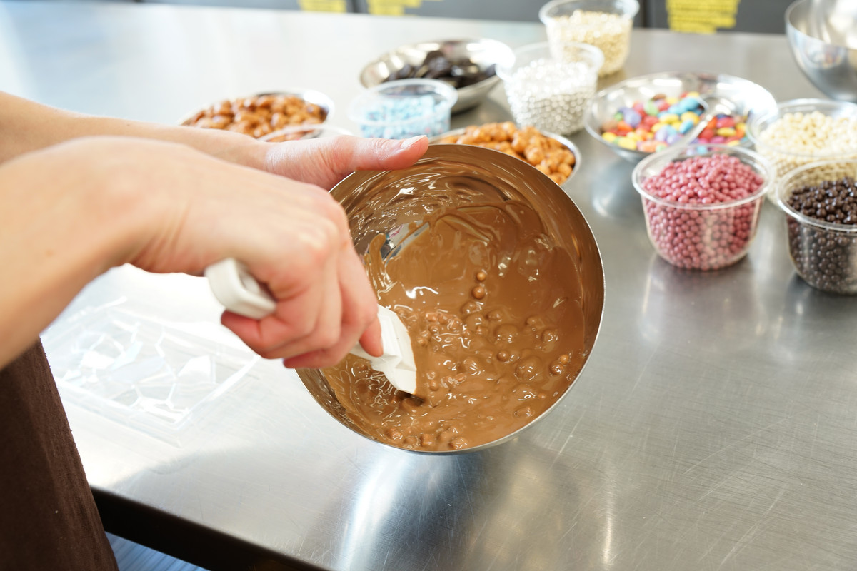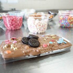 Erlebe unsere Confiserie hautnah. Du kannst aus diversen Zutaten deine persönliche Schokolade zusammenstellen und eigenhändig giessen. Es stehen dir unterschiedliche Zutaten sowie Dekorationsmöglichkeiten zur Auswahl. Während die Schokoladentafel auskühlt, kannst du unser Schokoladen-Sortiment etwas besser kennenlernen und einiges daraus degustieren. Die selber hergestellten Produkte werden zum Schluss ausgeformt und verpackt, damit sie auch gleich mit nach Hause genommen werden können. Frischer geht nicht!
