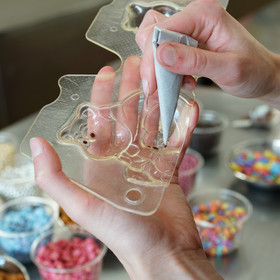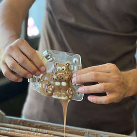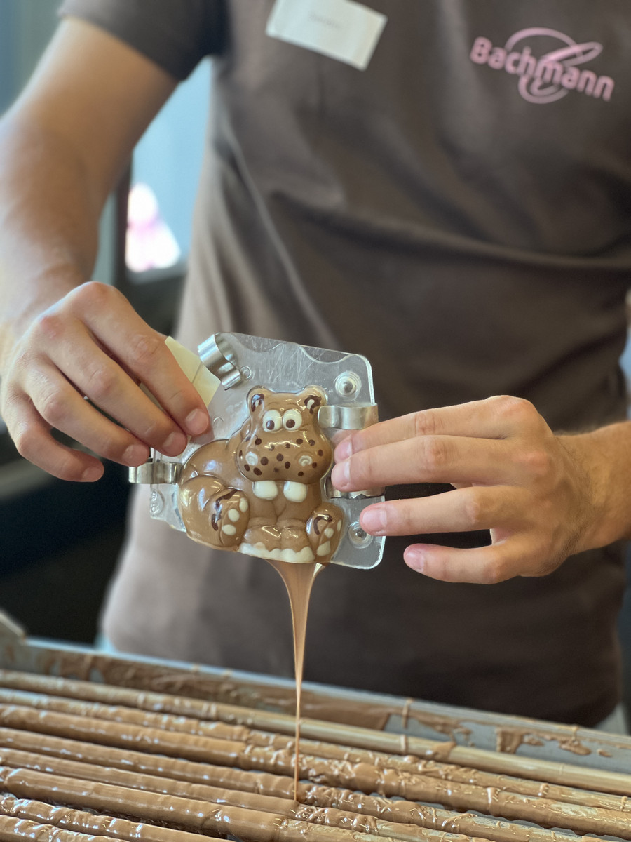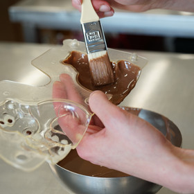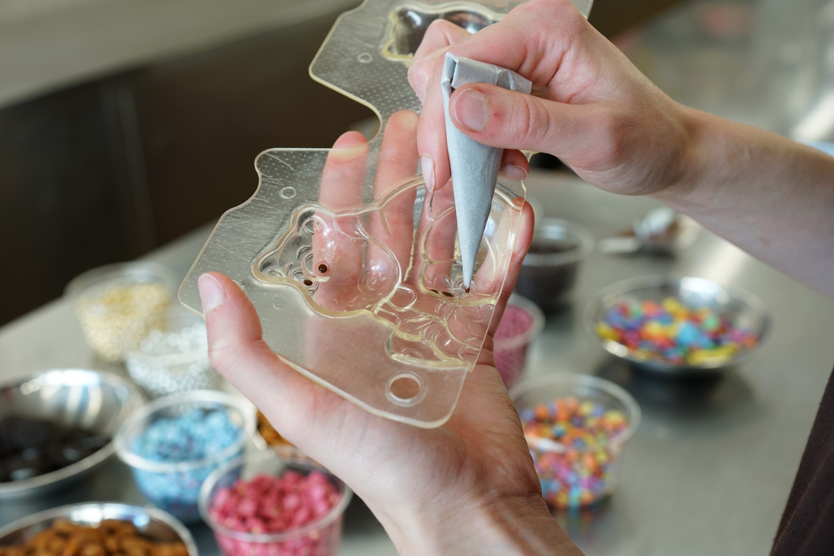 Giesse deine eigene Hohlfigur! Schritt für Schritt dekorierst du deine Schokoladenfigur aus, die du anschliessend selbstständig giesst.