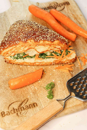 Der Sandwich-Hit für alle Vegetarier: das Creamcheese Veggie. Seit ich diese Spezialität probiert habe, kann ich nicht genug davon bekommen. Der cremige Kräuterfrischkäse harmoniert perfekt mit den knackigen Karotten sowie dem frischen Schnittlauch, umhüllt von einem knusprig gebackenen Laugenbrot. Ein Geschmackserlebnis, dass die Sinne verführt.