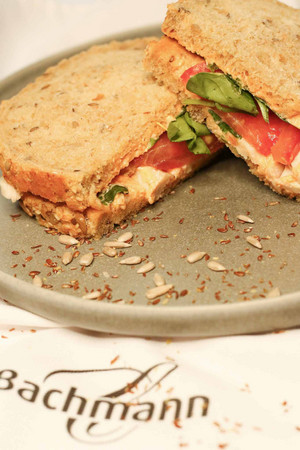 Confiserie Bachmann ist bekannt für zartschmelzende Schokolade, süsse Patisserie und knuspriges Brot. Kulinarisch mindestens so wichtig ist für mich ebenfalls die grosse Auswahl an frischen Sandwiches. Auch hier sticht die Confiserie Bachmann mit einem einmaligen Sortiment heraus. Alle Sandwiches werden in der hauseigenen Küche mit regionalen Zutaten von Grund auf frisch hergestellt. Täglich werden bei uns ca. 5'400 frische Sandwiches von Hand belegt.