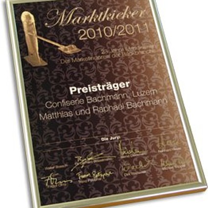 Der «Marktkieker» wird alle zwei Jahre an herausragende und richtungsweisende Unternehmen verliehen. Die zehnköpfige, unabhängige Jury, zusammengesetzt aus Journalisten, Preisträgern, Fachschuldirektoren, Marketingexperten und Ehrenamtsträgern, einigte sich einstimmig: Dieser Preis gehört nach Luzern. Die Confiseur Bachmann AG konnte sich gegen 70 namhafte Finalisten ihres Fachs durchsetzen. Eines haben alle Preisträger gemeinsam: Sie haben Pionierarbeit für die Backbranche geleistet und hatten dabei den Mut, ausgetretene Pfade zu verlassen. Der «Marktkieker» ist deshalb kein Preis für Umsatzmillionäre, sondern ein Preis, der Innovationsfähigkeit prämieren will. Wichtig ist nicht mehr nur die Produktion, sondern auch die Entwicklung von Management- und Marketingstrategien und das Ergreifen von Chancen am Markt.