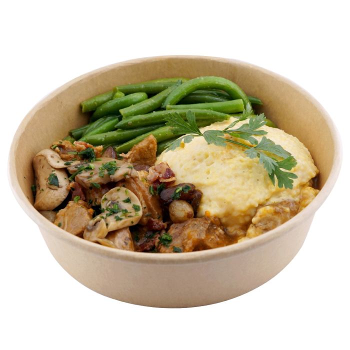 Zutaten: Wasser, Bohnen 22%, Schweinefleisch 14% (Schweiz), Vollmilch, Mais 5%, Zwiebeln, Weisswein (Sulfit), Grana Padano gerieben DOP (Milch, Salz), Silberzwiebeln (Konservierungsmittel: Kaliummetabisulfit), Speck (Schweinefleisch (Schweiz), Lactose, Stabilisator: Diphosphate, Antioxidationsmittel: Ascorbinsäure), Crema di Aceta Klassik (Aceto Balsamico di Modena (Weinessig (Schwefeldioxid), Konzentrierter Traubenmost, Farbstoff: Zuckerkulör, Modifizierte Stärke), natives Olivenöl extra, Gemüse Bouillon (Geliermittel: Xanthan, Johannisbrotkernmehl, Aromen), Rapsöl, Bratensauce (Weizenkeimmehl, Geschmacksverstärker: Mononatriumglutamat, Dinatriuminosinat, Dinatriumguanylat), Aromen (Soja), Verdickungsmittel: Guarkernmehl, Säuerungsmittel: Zitronensäure), Saucenbinder (Weizen), Doppel Tomatenmark, Alpensalz, Knoblauch, Gewürzmischung