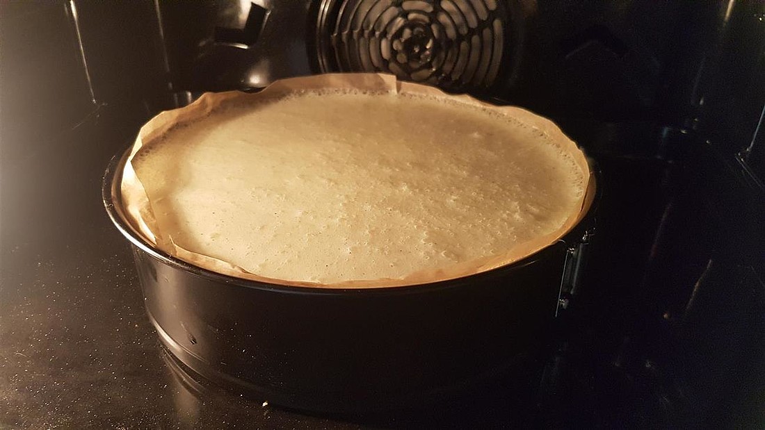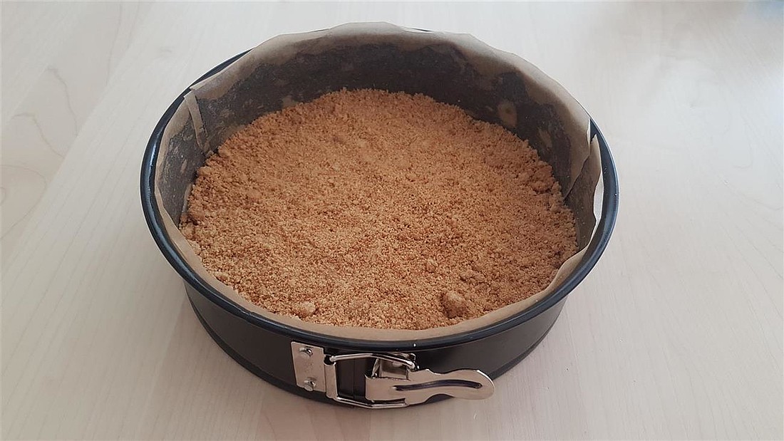 - Springform 24 cm Durchmesser ausbuttern und mit Silikonpapier auslegen am Rand und Boden.