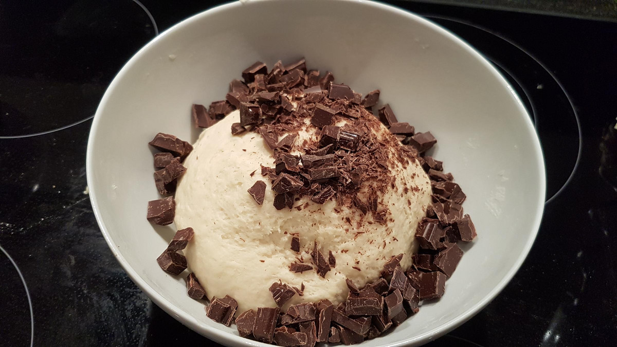 Die Fotos beziehen sich auf die Variante mit Schokoladenstückli.