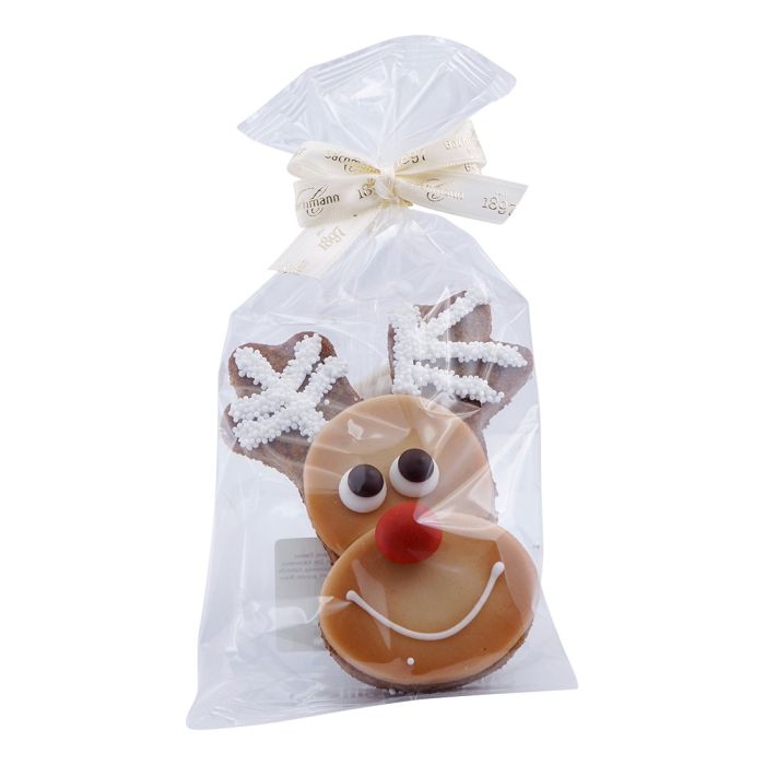 Elk treat - Packed in a cello bag with a gold-coloured bow with Bachmann logo.
