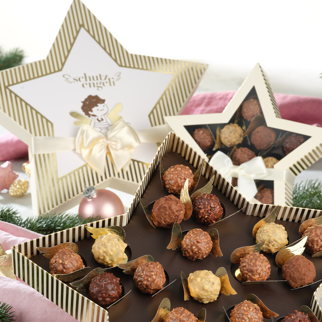 What would Christmas be without our Guardian Angels? Our Guardian Angel truffles, presented in a decorative star-shaped box, are the perfect little gift or a sweet treat for cozy moments. They make the Christmas season shine in its most delightful form!
